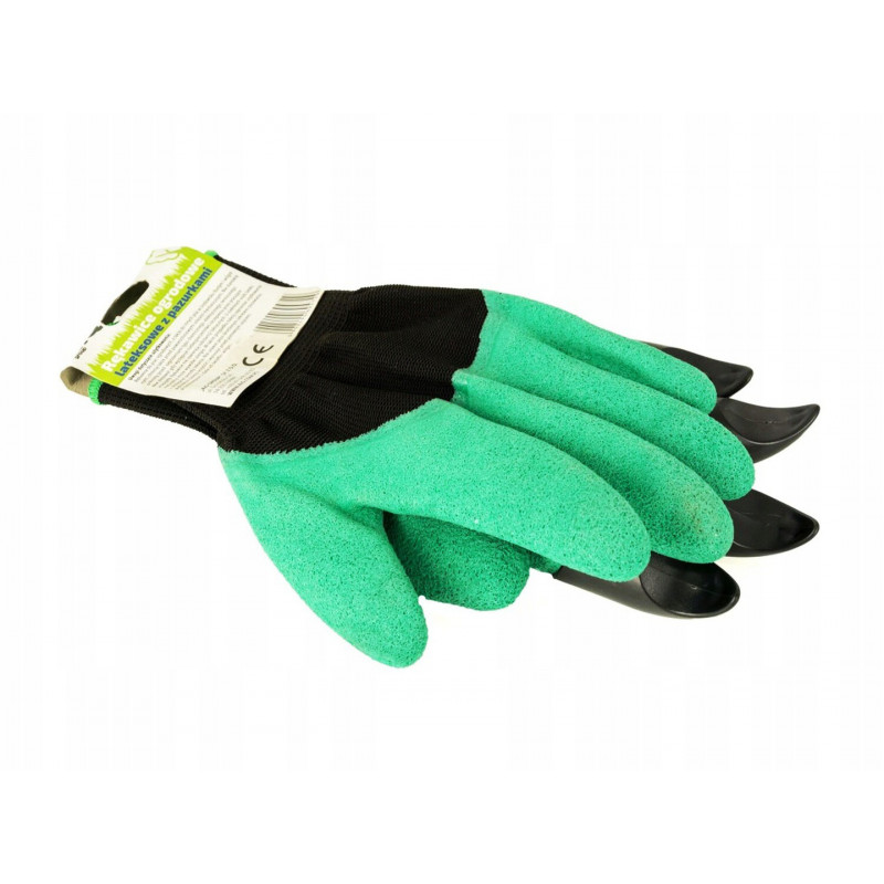 Funkcionalitāte 2-in-1: cimdi ar integrētajiem plastmasas uzgaļiem ļauj apstrādāt augsni bez lāpstas vai grābekļa.