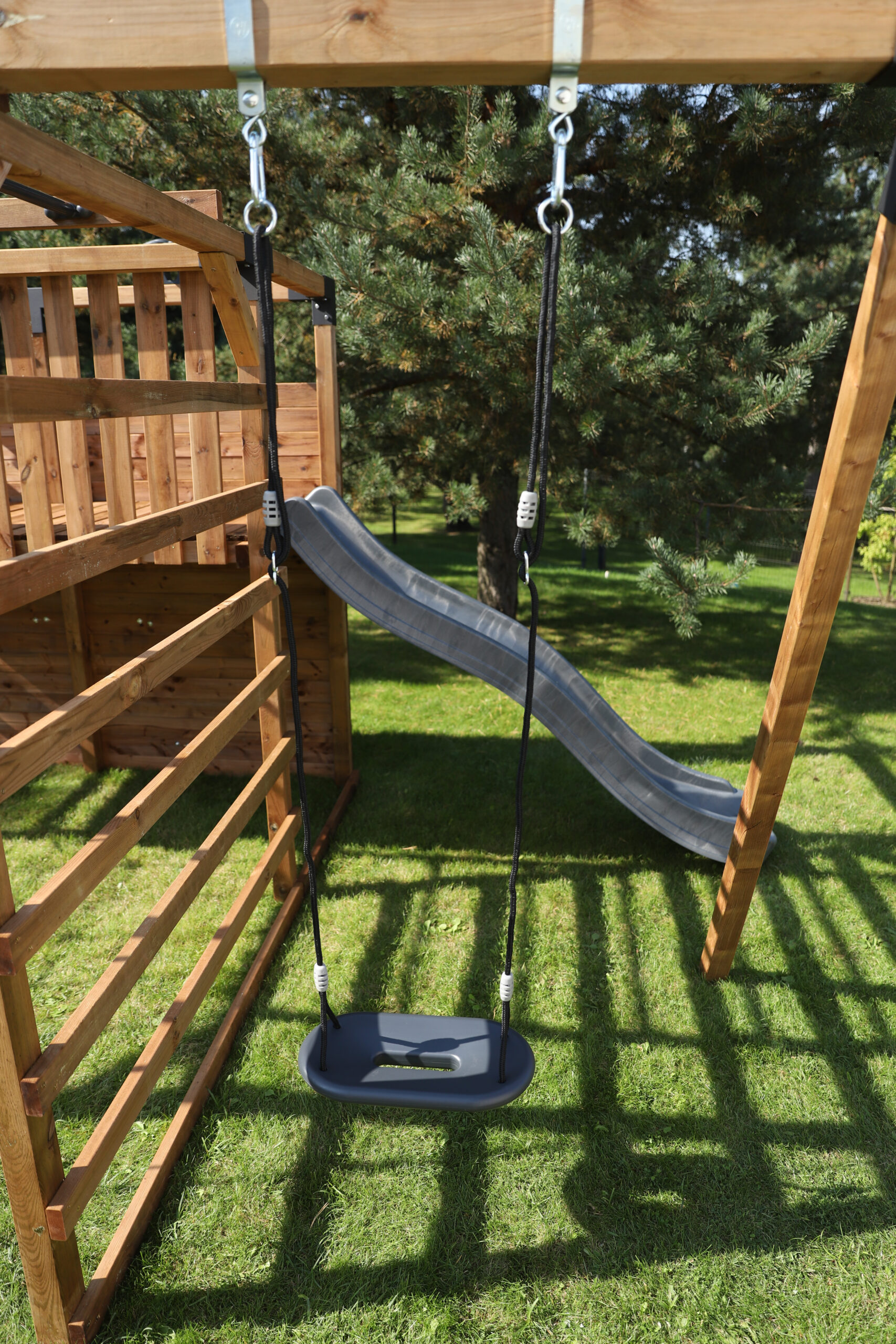 Mūsdienīgais dizains un antracīta krāsa lieliski sader ar dažādiem rotaļu laukumiem vai citām konstrukcijām. Šūpoles ir izgatavotas no augstas kvalitātes HDPE plastmasas, tāpēc ir izturīgas, stabilas un noturīgas pret laikapstākļiem.