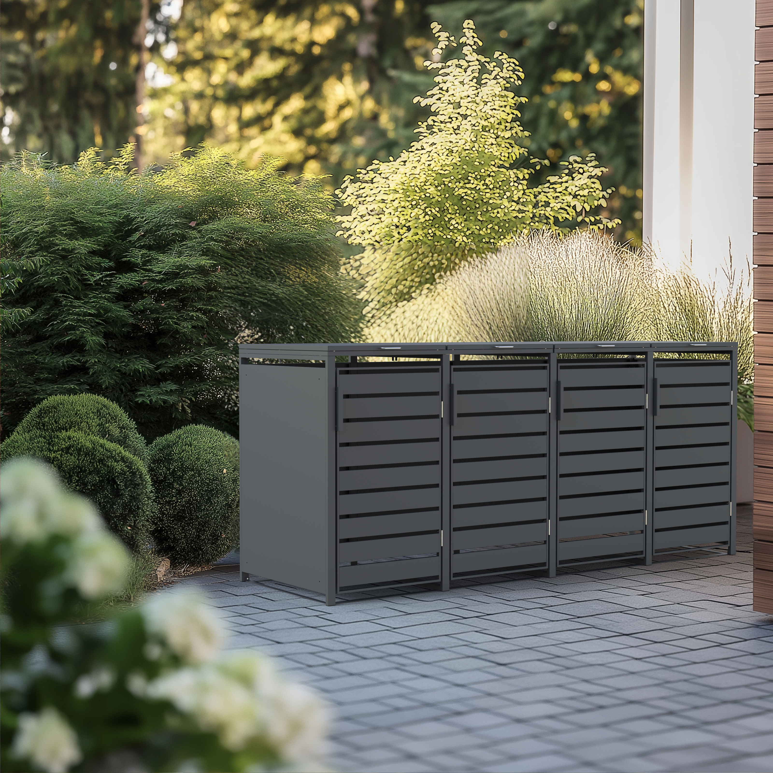 4iQ › Veikals › Dārzam › Atkritumu konteineru nojumes › Metāla četrvietīga atkritumu konteineru nojume