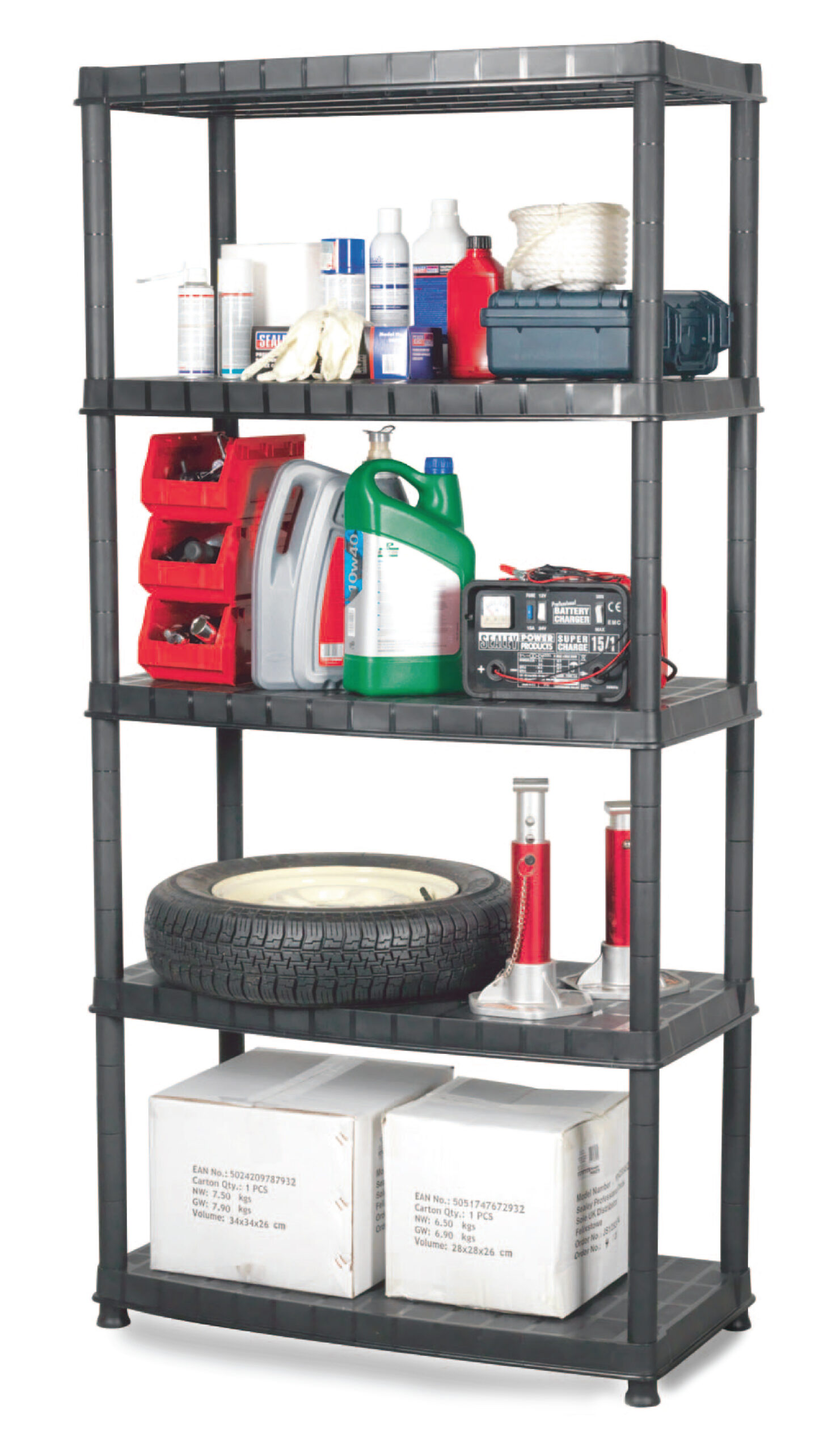 4iQ › Veikals › Uzglabāšanas plaukti - stelāžas › Plastmasas plaukti › Uzglabāšanas plaukts – stelāža, 185 x 91,5 x 45,7 cm, 70 kg, melns